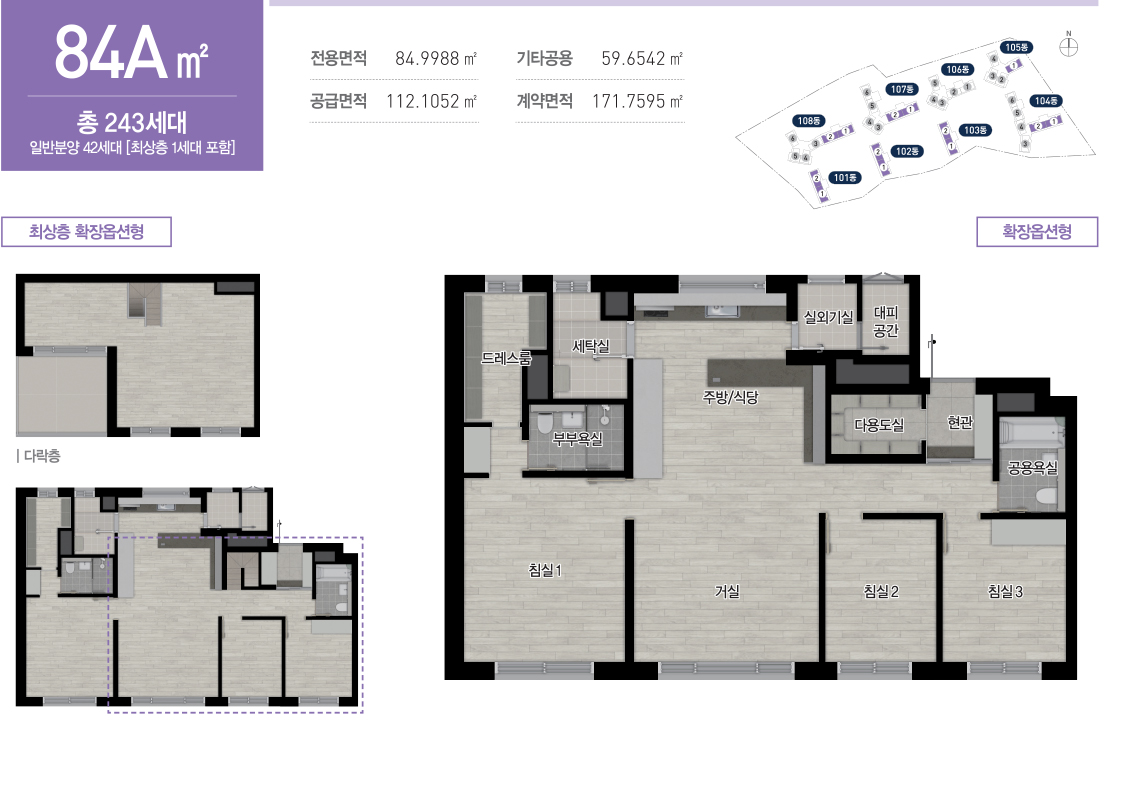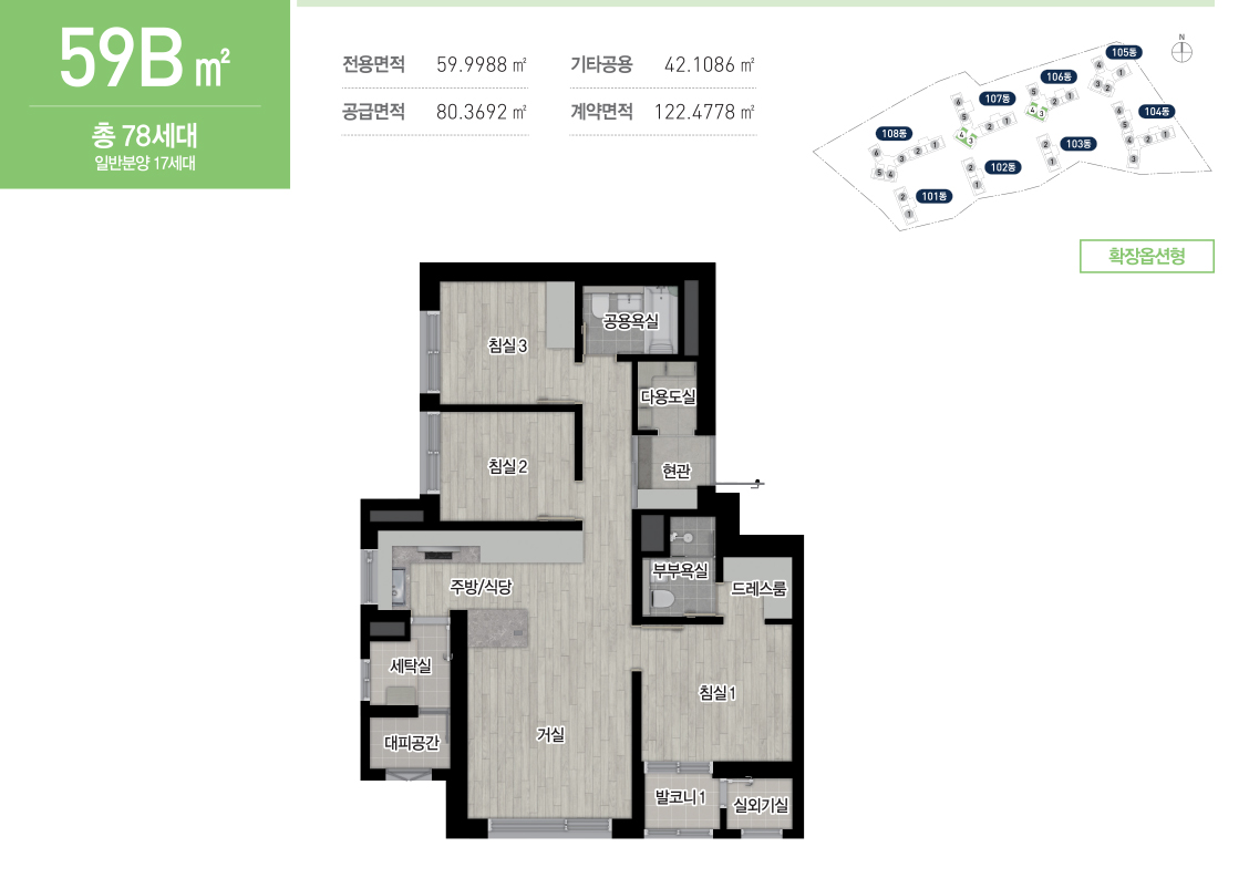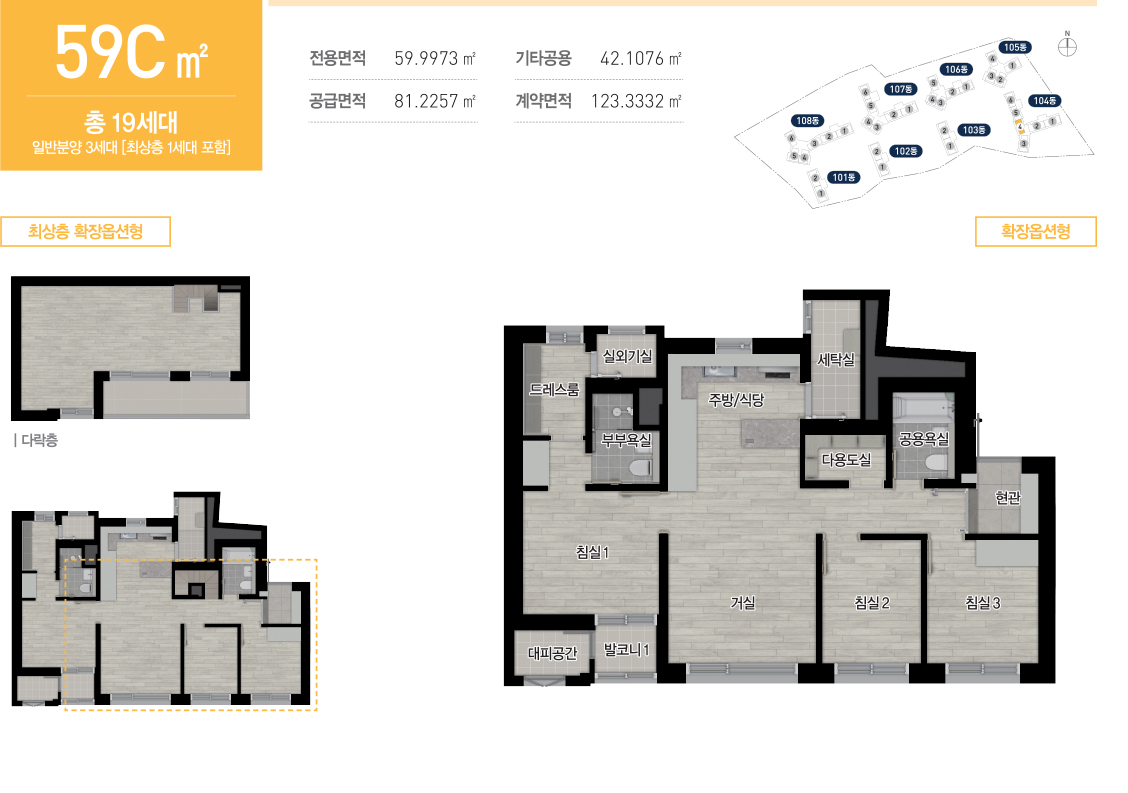 상기 평면도는 유상옵션형 평면으로 계약 시 유상옵션 품목을 확인하시기 바랍니다.